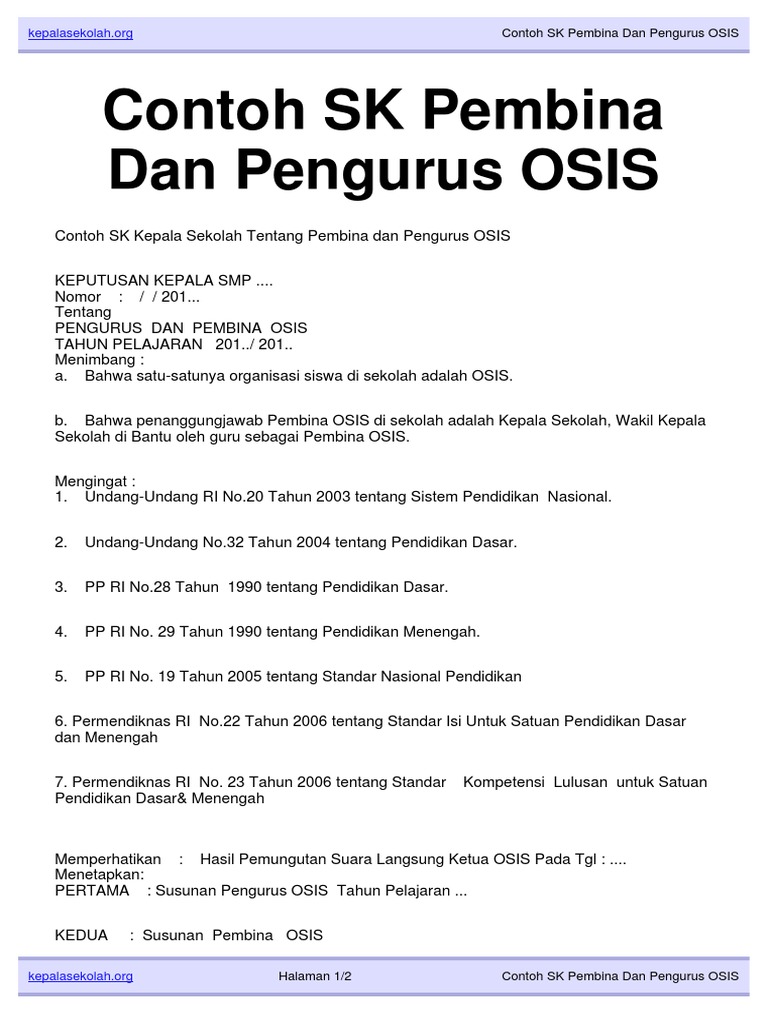 Bidang olahraga, kesenian, smp, sma,smk program kerja pembina osis blog archives. Kami ucapkan selamat kepada kamu yang berhasil terpilih sebagai pengurus organisasi siswa intra sekolah (osis) yang baru dan selamat bertugas. Doc contoh sk pengurus osis novita kumaunang academia edu. Sk pengurus mpk dan osis october 2020 0. 1568 kali contoh sk pembina dan pengurus osis.